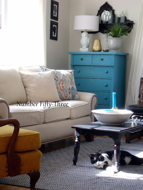 Number Fifty-Three shared how she blended new and vintage pieces in her pretty living room.