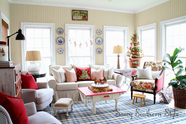 ReplyDeleteI love your sunroom. So cheerful and festive. I love the little stockings hung in the windows too cute.