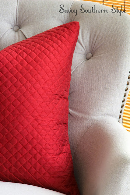Switched pillows out for more deep reds and I love these old quilted Pottery Barn covers.